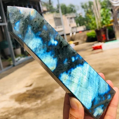 373g Natural Blue Light Labradorite Quartz Crystal Tower Mineral Reiki T610