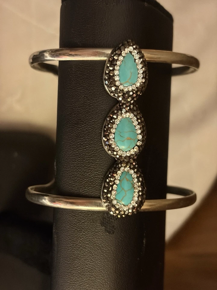 Beautiful Silver, And Teal Adjustable Bracelet