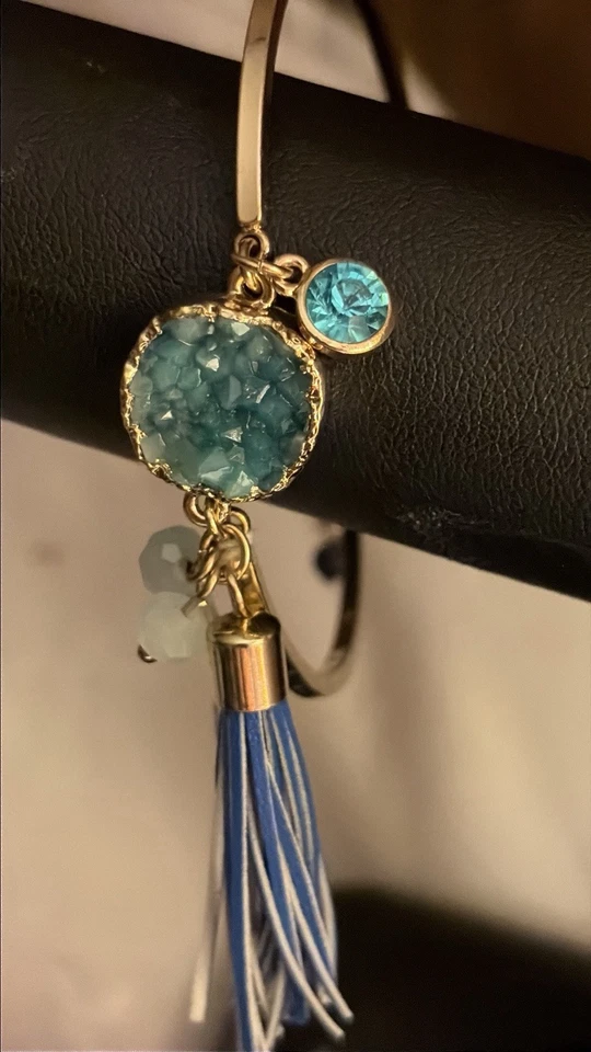 Teal /Aqua Stone Centered On Plated Gold, With Beads And Gems bracelet
