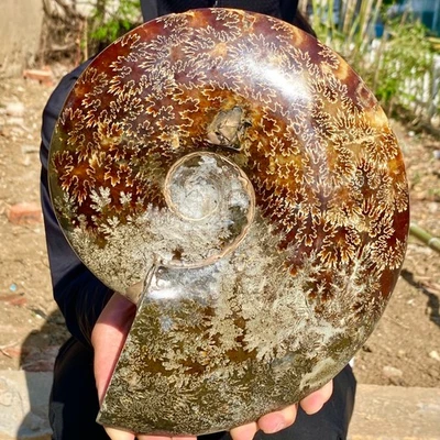 7.27LB Natural agate fossil snail shaped convex round gemstone