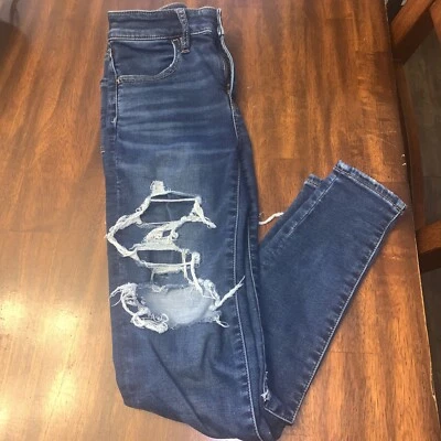 American Eagle Blue Super Stretch Jeans,Hi Rise Jegging Ankle Distressed Sz 0 R
