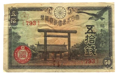 1943 Japan 50 Sen Yr 18 Circulated Banknote KM# 59