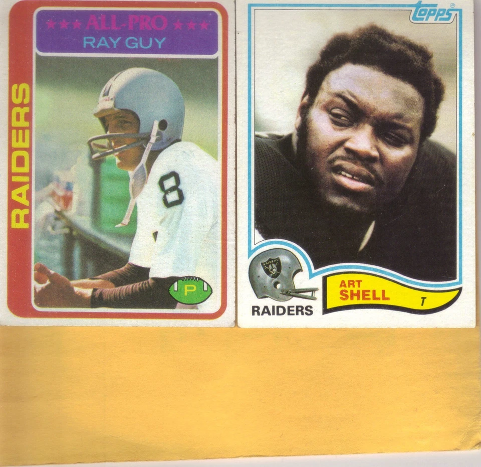 Oakland Raiders All Pro lot Ray Guy (78 Topps)/Art Shell (82 Topps)