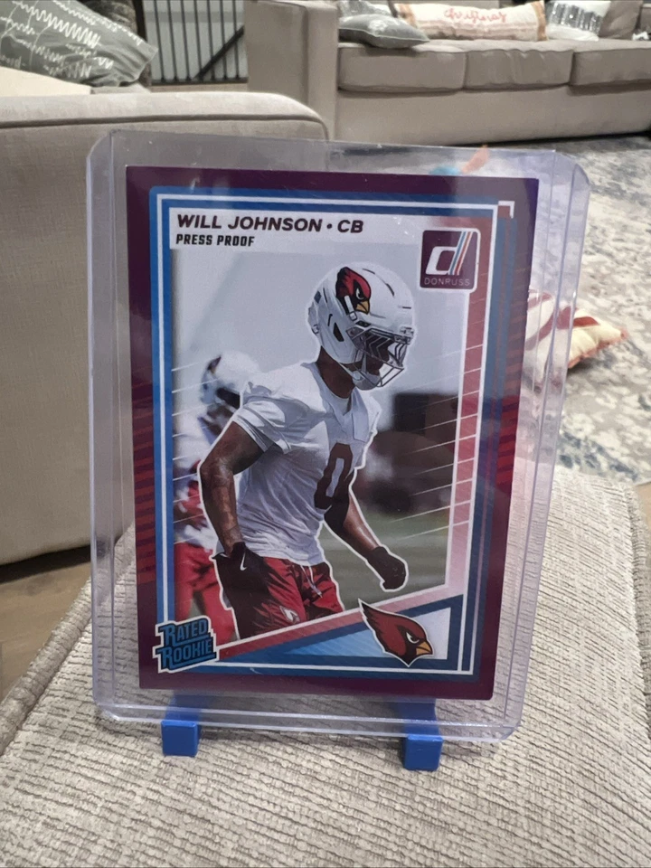 2025 Panini Donruss #396 Will Johnson Rated Rookie Purple Press Proof Cardinals
