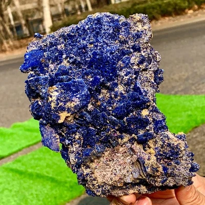 318GRare!Australia Klein blue azurite sunflower coexists on white kaolin bedrock