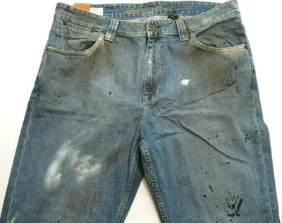 DKNY Low Rise Performance Denim Jeans Indigo Stained Worn Faded NEW $99 36x32