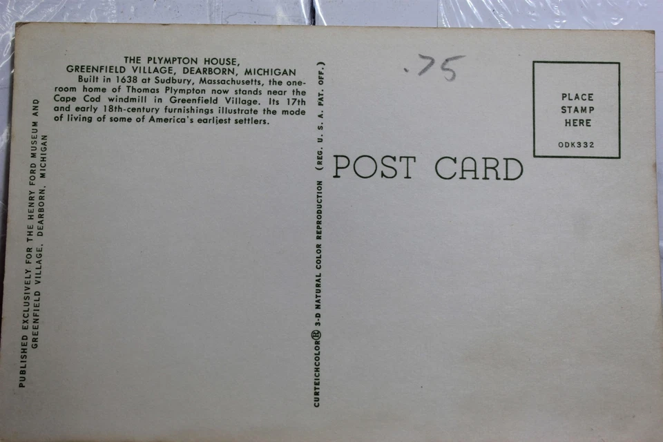 Michigan MI Dearborn Greenfield Village Plympton House Postcard Old Vintage Card