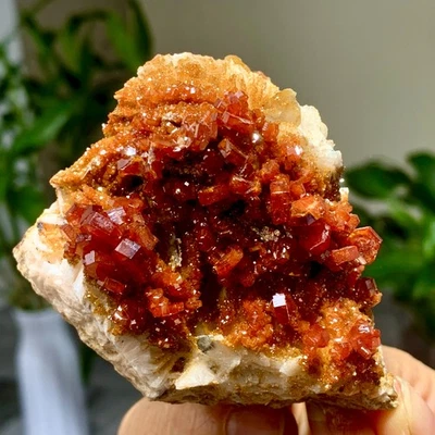 309G Natural vanadinite on barite cluster crystal mineral specimen from Morocco