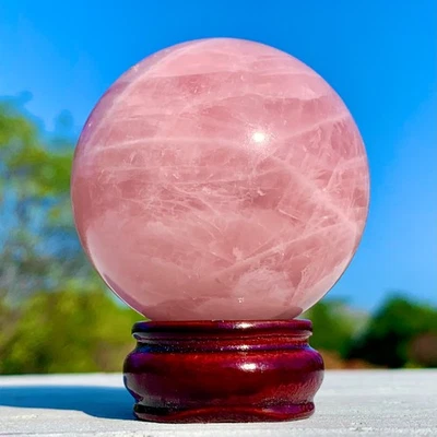 190G Natural Pink Rose Quartz Sphere Crystal Ball Decor Reiki Healing