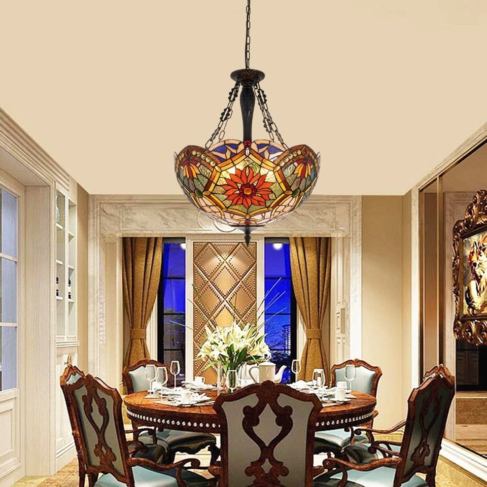 20" Inverted Colorful Chandelier 5-Lights Tiffany Stained Glass Pendant Lamps