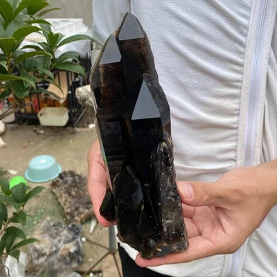 2.4lb Natural Smoky Black Quartz Crystal Cluster Raw Mineral Specimen