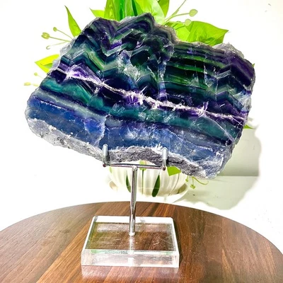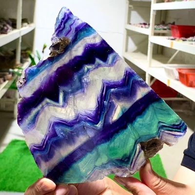 518G Natural beautiful Rainbow Fluorite Crystal Rough slices stone specimens