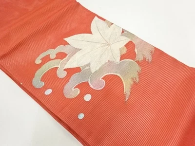 06467# JAPANESE KIMONO / VINTAGE NAGOYA OBI FOR SUMMER / WOVEN ROUGH WAVE & MAPL
