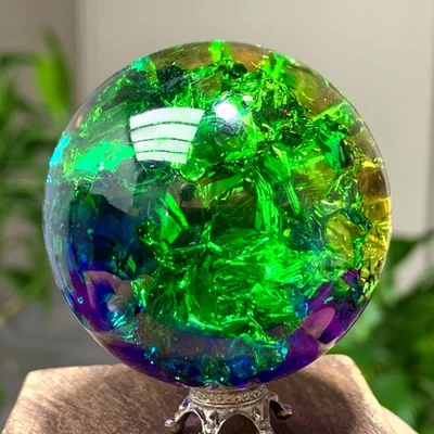 152G Natural Titanium Rainbow Quartz sphere Crystal ball Healing