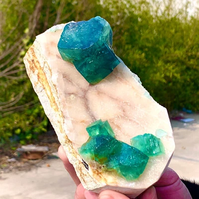 2.16LB Natural transparent green cubic fluorite mineral sample from Inner Mong