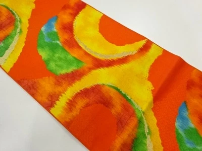 06468# JAPANESE KIMONO / VINTAGE NAGOYA OBI / CHIKUZEN HAKATA / WOVEN ABSTRACT
