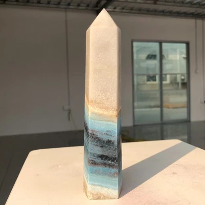 208g Natural Amazonite Crystal Quartz Obelisk Wand Point Mineral Reiki D677