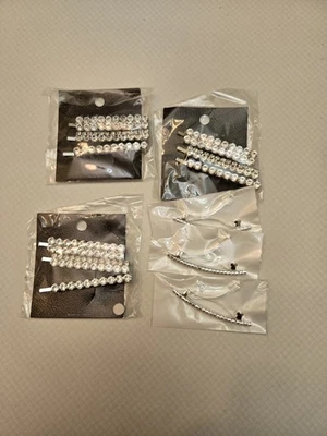 Rhinestone Bobby Pins And Barrettes New Lot Of 12 Various Sizes