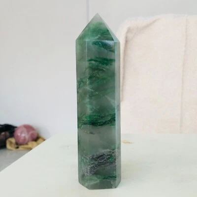 433g Natural Africa Green Agate Quartz Crystal Obelisk Mineral Healing C519