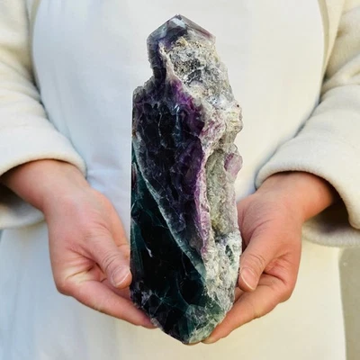 1410G Natural unique colored fluorite pillar quartz crystal sample