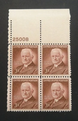 U.S. #1062 3¢ George Eastman, Plate Block - MNH/OG 1954 (1085)