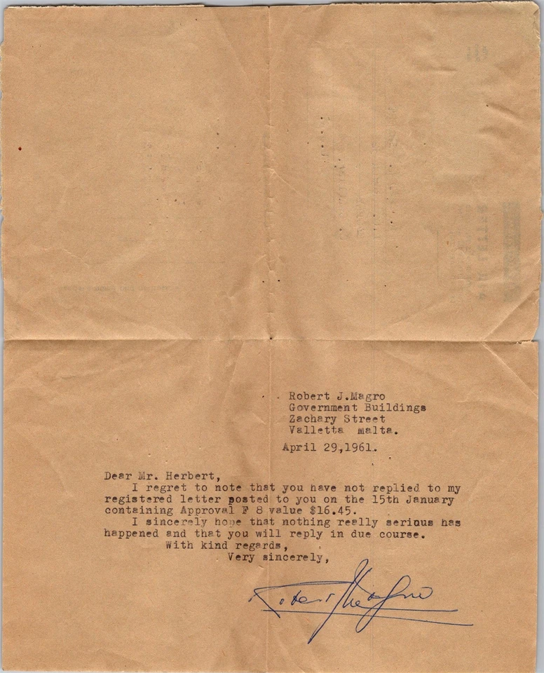 GOLDPATH: Malta aerogram 1961 to USA with letter CV932_P31