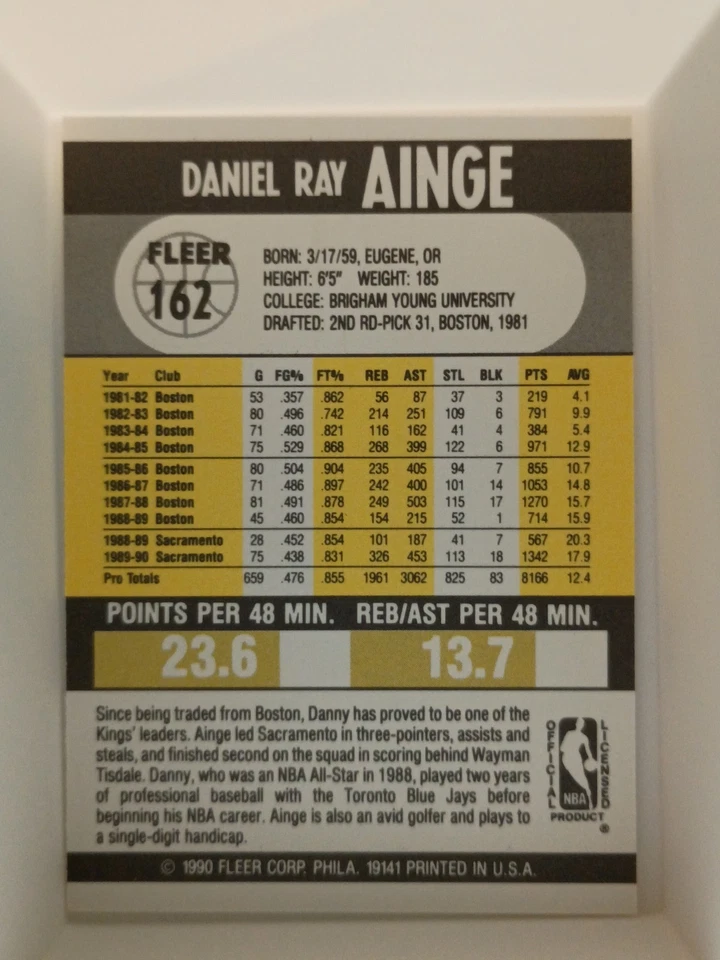 1990-91 Fleer Danny Ainge Sacramento Kings #162