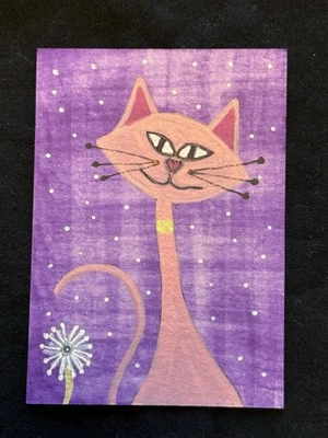 ACEO Original Mini Painting Mid Century Modern Atomic Cat
