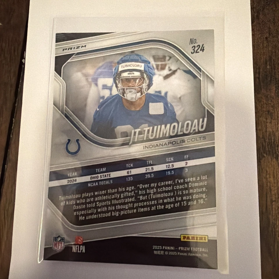 2025 Panini Prizm JT Tuimoloau #324 White Disco RC
