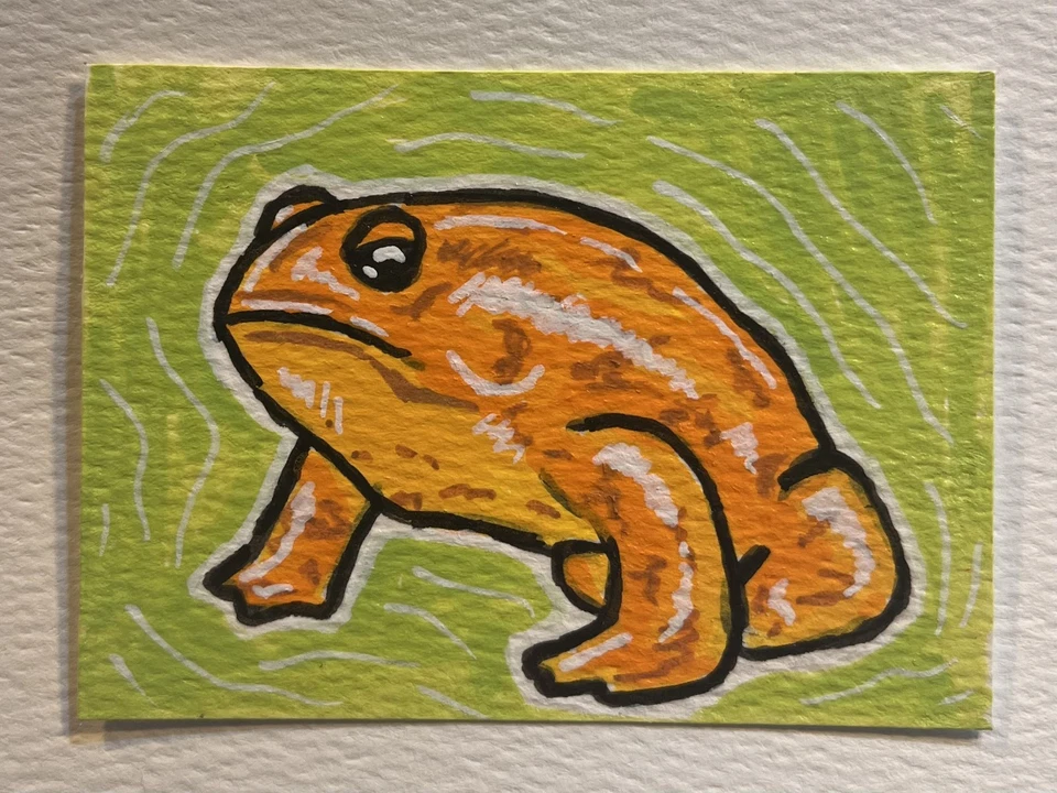 ACEO Original, Chubby Orange Toad, Mini Art Drawing, Signed, Sealed