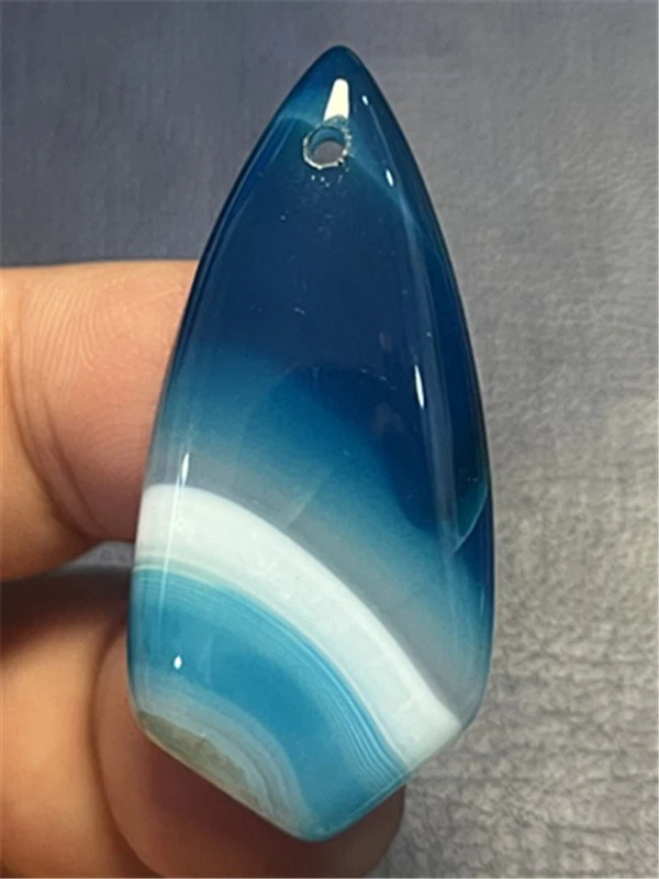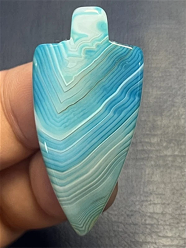 KU87999 47x22x7mm Blue/white Stripes Agate Shield Pendant Bead
