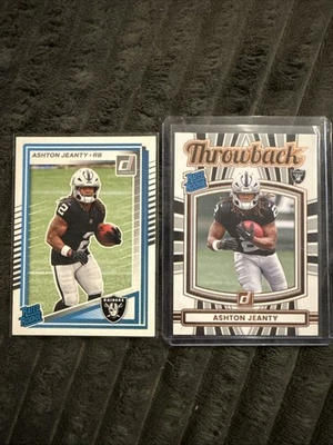 2025 Panini Donruss Rated Rookies Throwback Ashton Jeanty #6 (RC) + Base RC #305