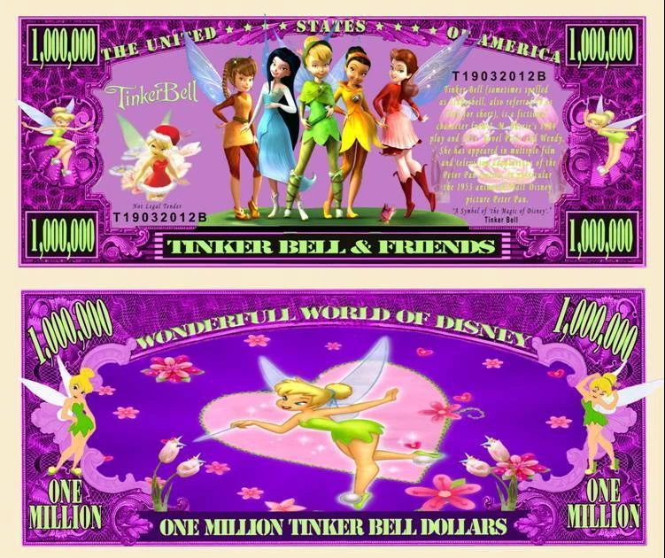 Tinker bell & Friends Novelty Dollar Bill comes In a Free soft Polly Sleeve