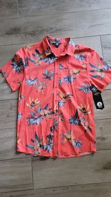 Volcom New With Tags Button Up Tropical Shirt - Orange - XL