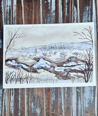 Original A6 (6x4) OOAK Hand Painted Watercolor “Winter Vista” Landscape