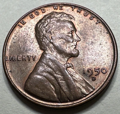 1950 D Lincoln Wheat Cent US Coin One 1c, Denver 9622N