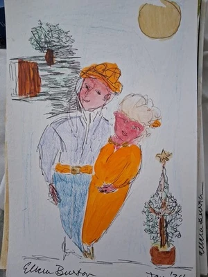 Original Art Acrylic & Pen on Paper Abstract 6x9 Man & Woman