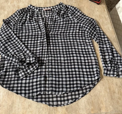 Philosophy Republic Clothing Women Black 3/4 Sleeve Button-Down Shirt L