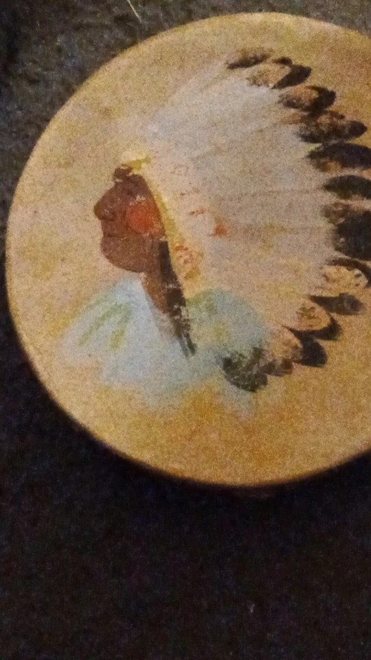 Vintage hand painted Native American souvenir. animal hyde drum .