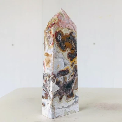 330g Natural Pink Mexican Crazy Lace Agate Quartz Crystal Obelisk Healing Y304