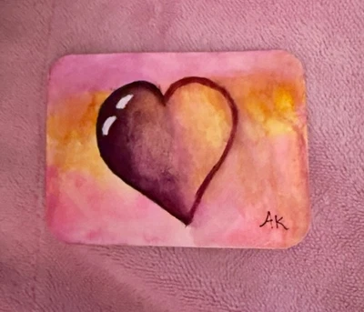 Original ACEO art, acrylic painting, heart, Miniature. Watercolor Hand Painted