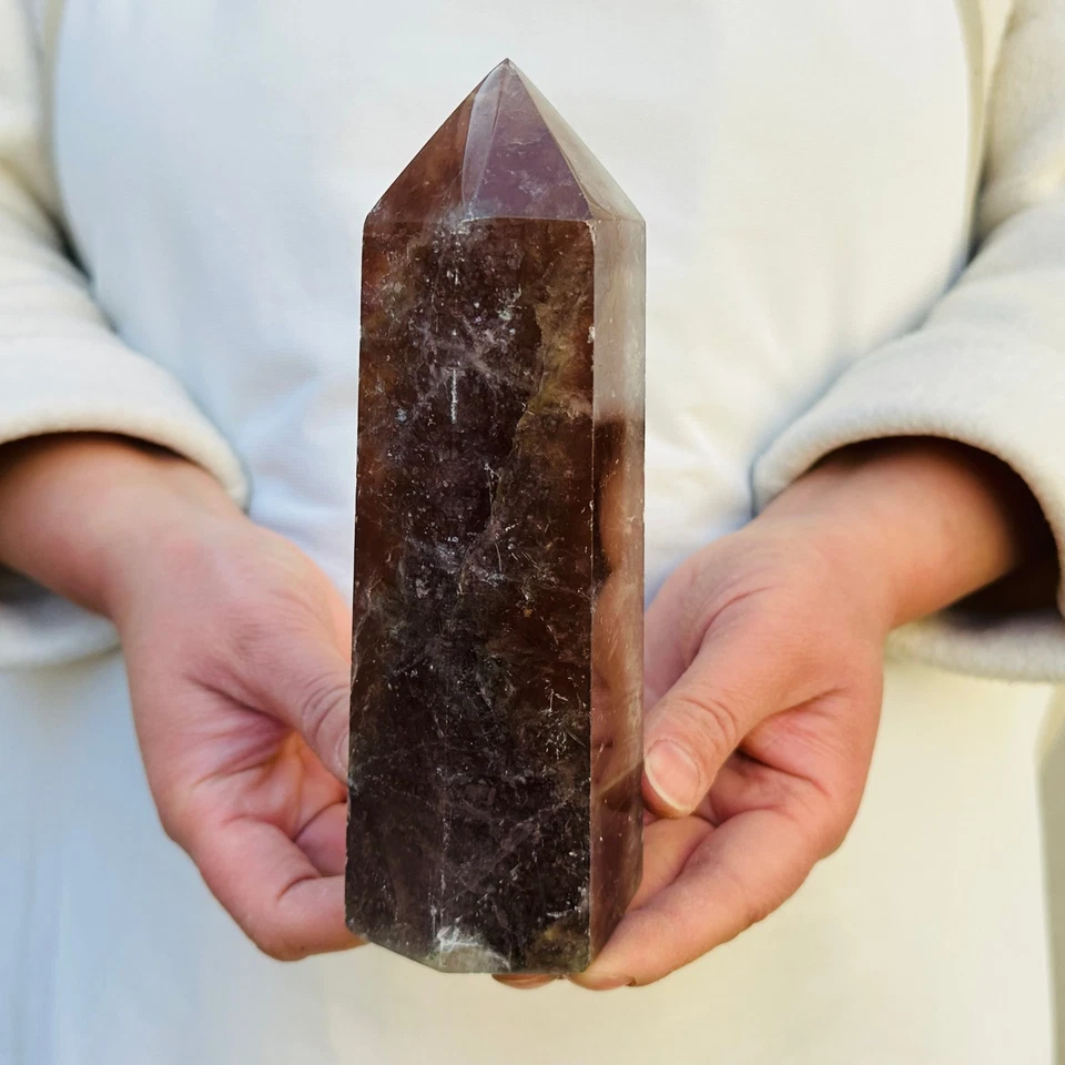 1112G Natural Purple Fluorite Quartz Crystal Obelisk Wand Energy Column Healing