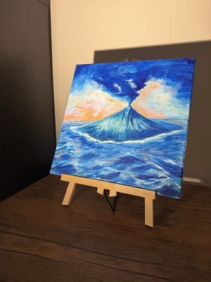 Original Contemporary Volcano Ocean Acrylic Painting on Canvas, Small