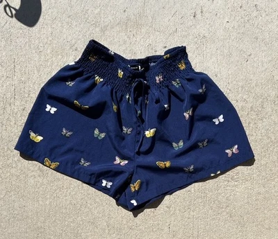 Shein Womens Blue Butterfly Print Drawstring Shorts Size Large