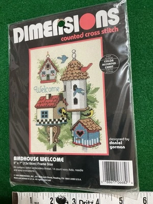 Dimensions Counted Cross Stitch 6682 Birdhouse Welcome AIDA 14 Count VNTG