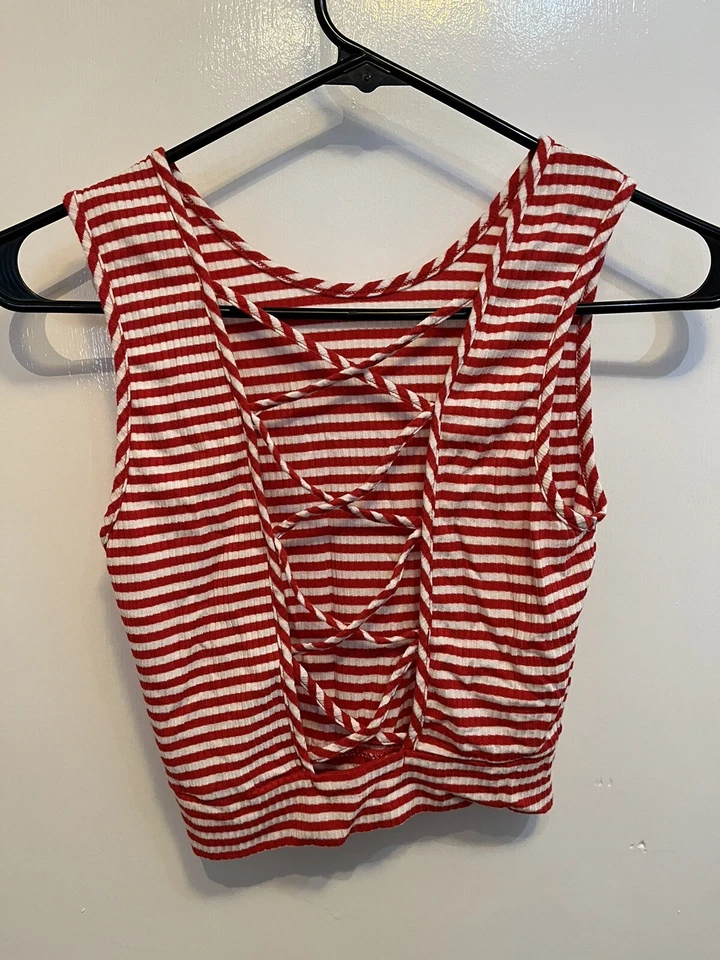 Color Story Juniors Red and White Striped Backless Strappy Tank Small