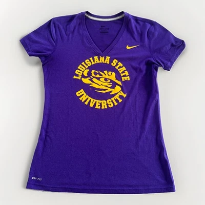 Nike LSU Tigers Womens Size S Purple T Shirt Louisiana State V-Neck Short Sleeve