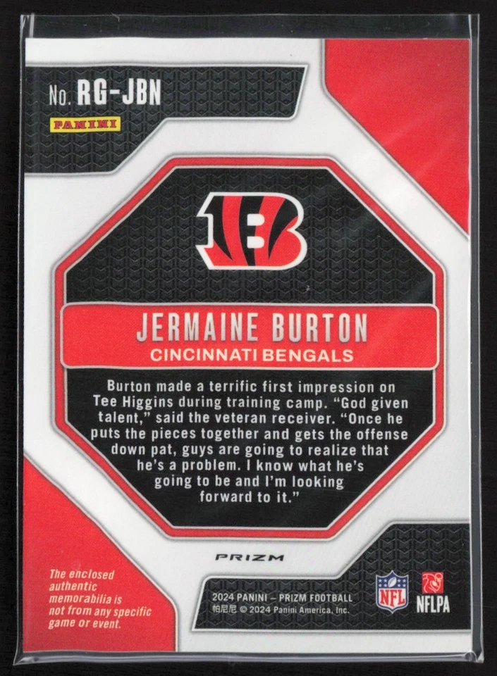 2024 PANINI PRIZM ROOKIE GEAR PINK JERMAINE BURTON RC JERSEY 1 COLOR CINCINNATI