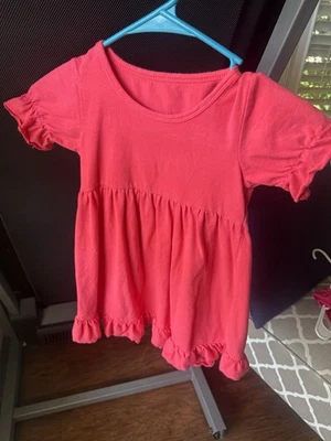 Short Sleeve Dress, Tunic, Coral Pink, Ruffle Girls Size 6