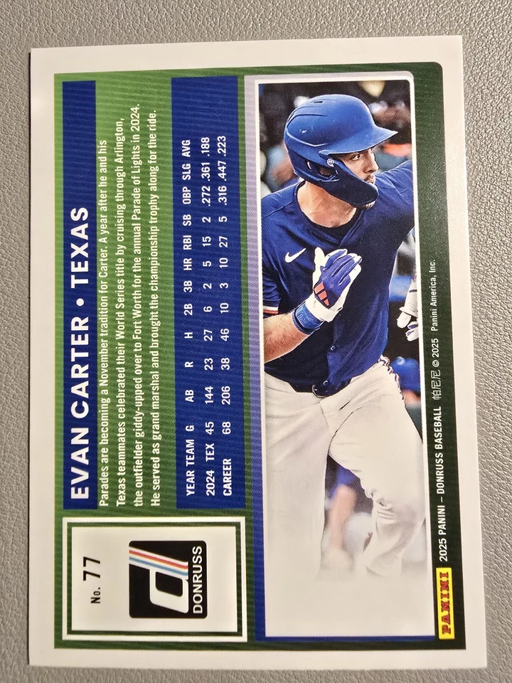 ⚡️⚡️✨️Evan Carter 2025 Panini Donruss Baseball Texas Rangers Yellow #77